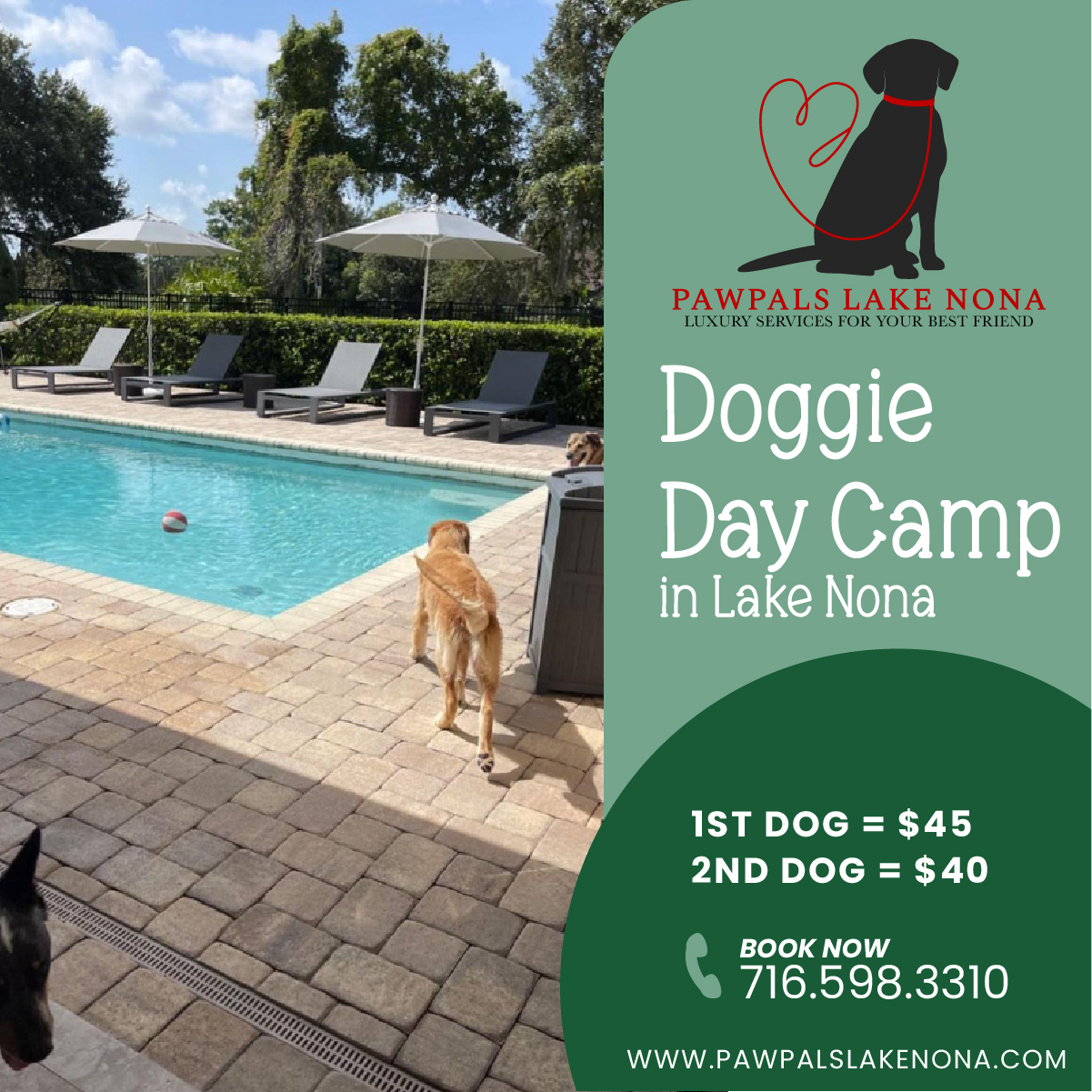 We offer daily activities, a fenced in yard, an inground pool, indoor and outdoor play areas, and more to ensure it’s the paw-fect escape for your pet.