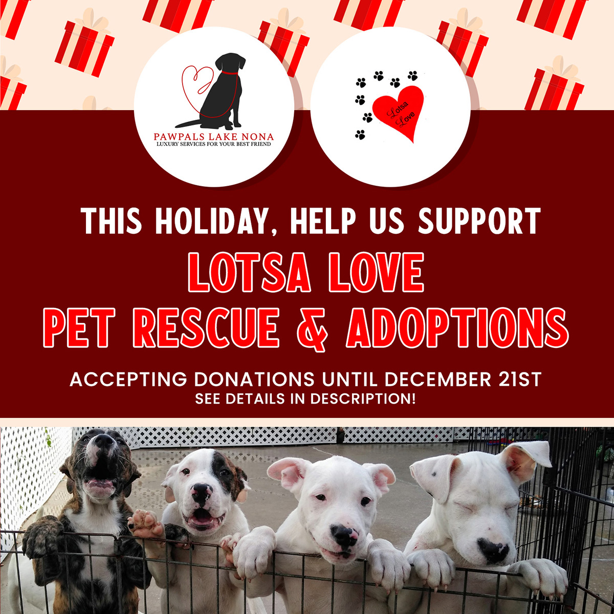 This holiday, help PawPals Lake Nona support Lotsa Love Pet Rescue and Adoptions by donating these in-demand items:
